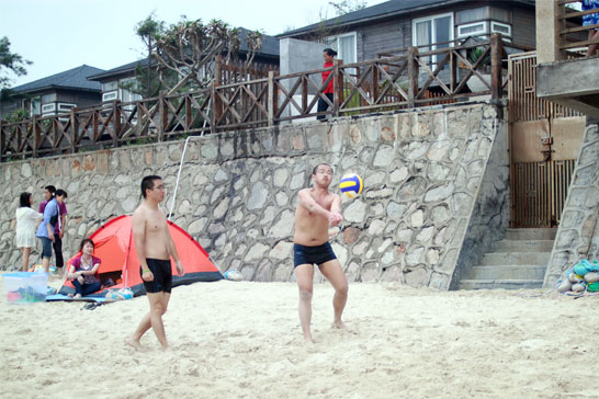 有的就順便和其他游人打起沙灘排球