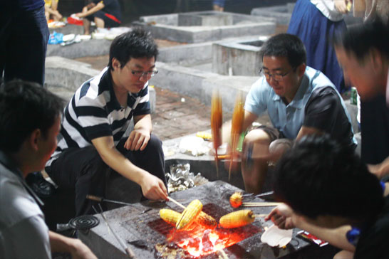 6點左右,天色漸暗,燒烤開始