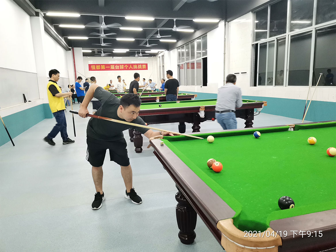 伴隨著恒都2020年的第一場乒乓球團體賽的圓滿閉幕,為了促進公司各個系統(tǒng)間的溝通與交流,豐富廣大員工業(yè)余文化生活,我們委員會成員和桌球協(xié)會成員一起討論了桌球團體循環(huán)賽的方案,經(jīng)討論擬2021年4月19~23日下班后在活動中心組織恒都第一屆桌球團體比賽。經(jīng)調(diào)研后,公司上上下下都非常期待這個團體比賽。乒乓球講究的是速度和技巧,需要隊員有技術(shù)的比拼和快速的反應(yīng)。而桌球卻是講究的是沉穩(wěn)和謀略,需要選手有著沉穩(wěn)的性格和精心的布局。從握桿,架橋,出桿到擊球,每一個動作都展現(xiàn)出選手們高超的球技及非凡的智慧。